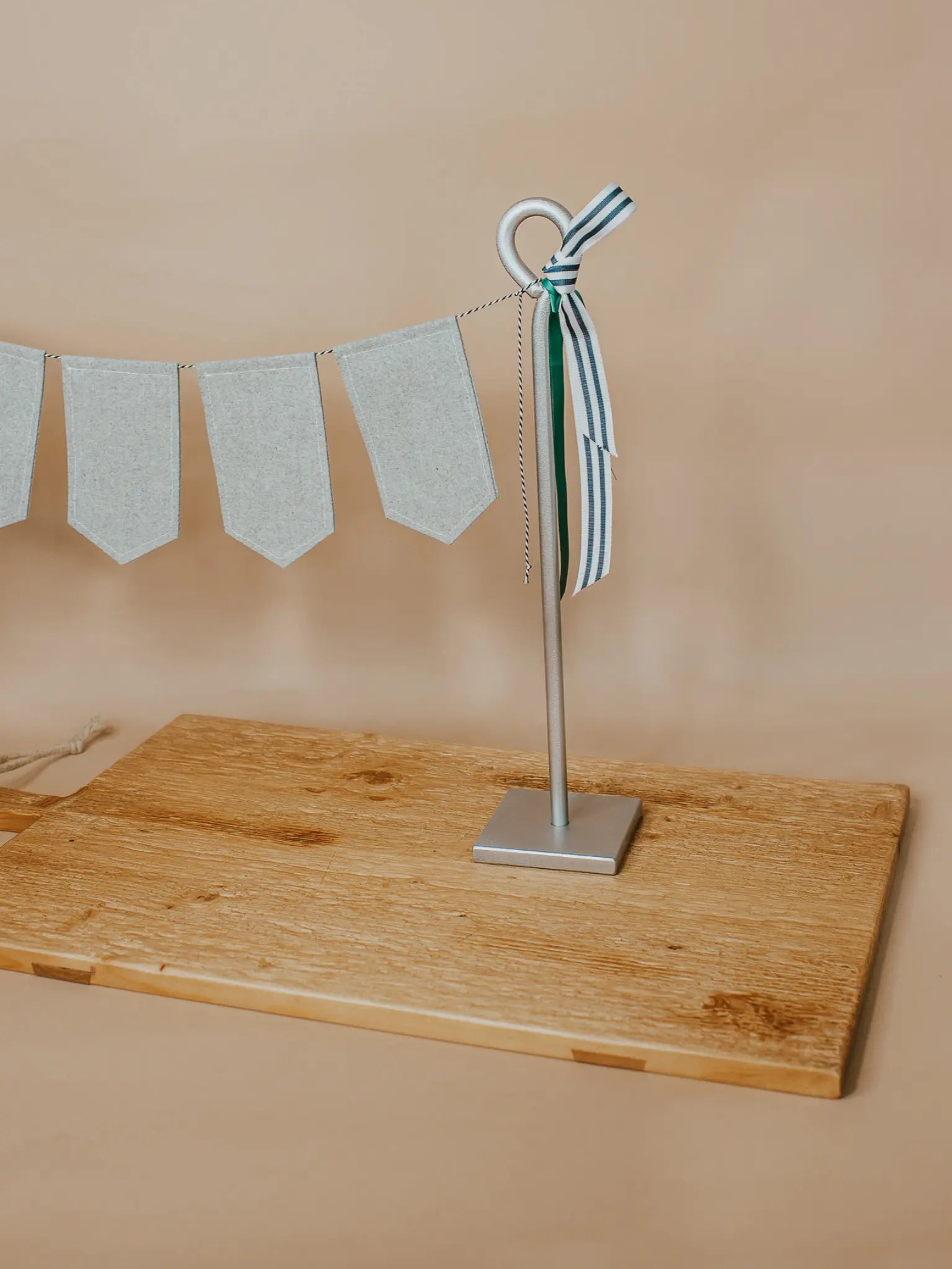 • Tabletop banner holders for holiday garlands, photo strands, and more